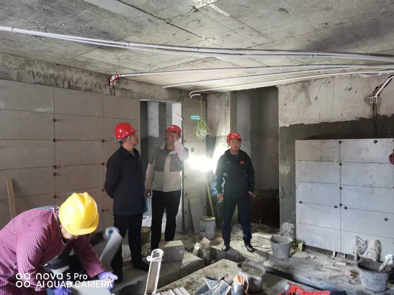 為進(jìn)一步加強(qiáng)和落實(shí)項(xiàng)目安全生產(chǎn)工作, 近日董事長張 學(xué)彬帶隊(duì)檢查龍掛山裝飾裝修項(xiàng)目開展安全生產(chǎn)工作。 張董 一行重點(diǎn)排查模板、 腳手架、 施工用電、 高空作業(yè)、 受限空 間等環(huán)節(jié)存在的安全隱患, 落實(shí)防滑、 防火、 防坍塌、 防高 處墜落、防機(jī)械傷害等安全措施。